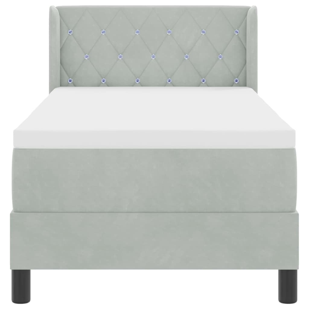 Pat cu arcuri pocket cu saltea gri deschis 80x200 cm din catifea