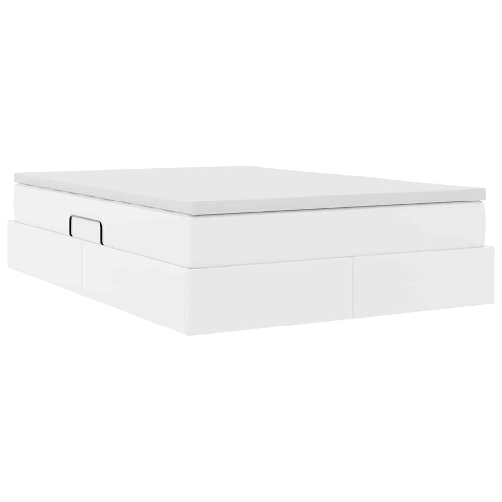 Pat cu saltea și spațiu de depozitare Alb 140 x 200 cm