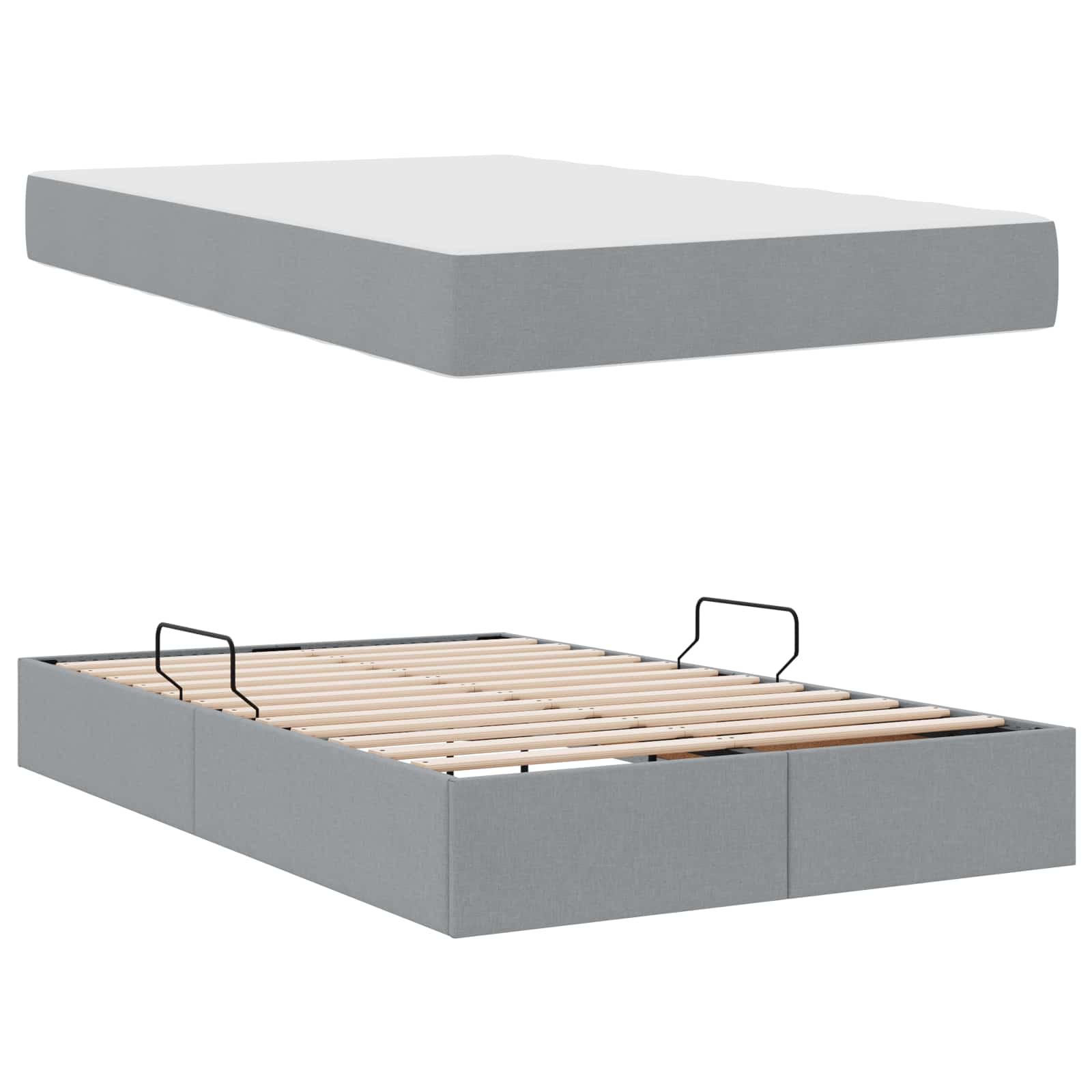 Pat cu saltea și spațiu de depozitare Gri deschis 120 x 190 cm