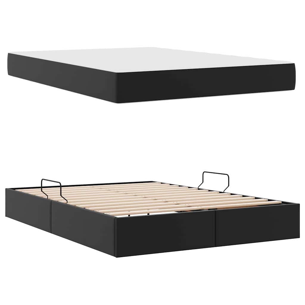 Pat cu saltea și spațiu de depozitare Negru 140 x 200 cm