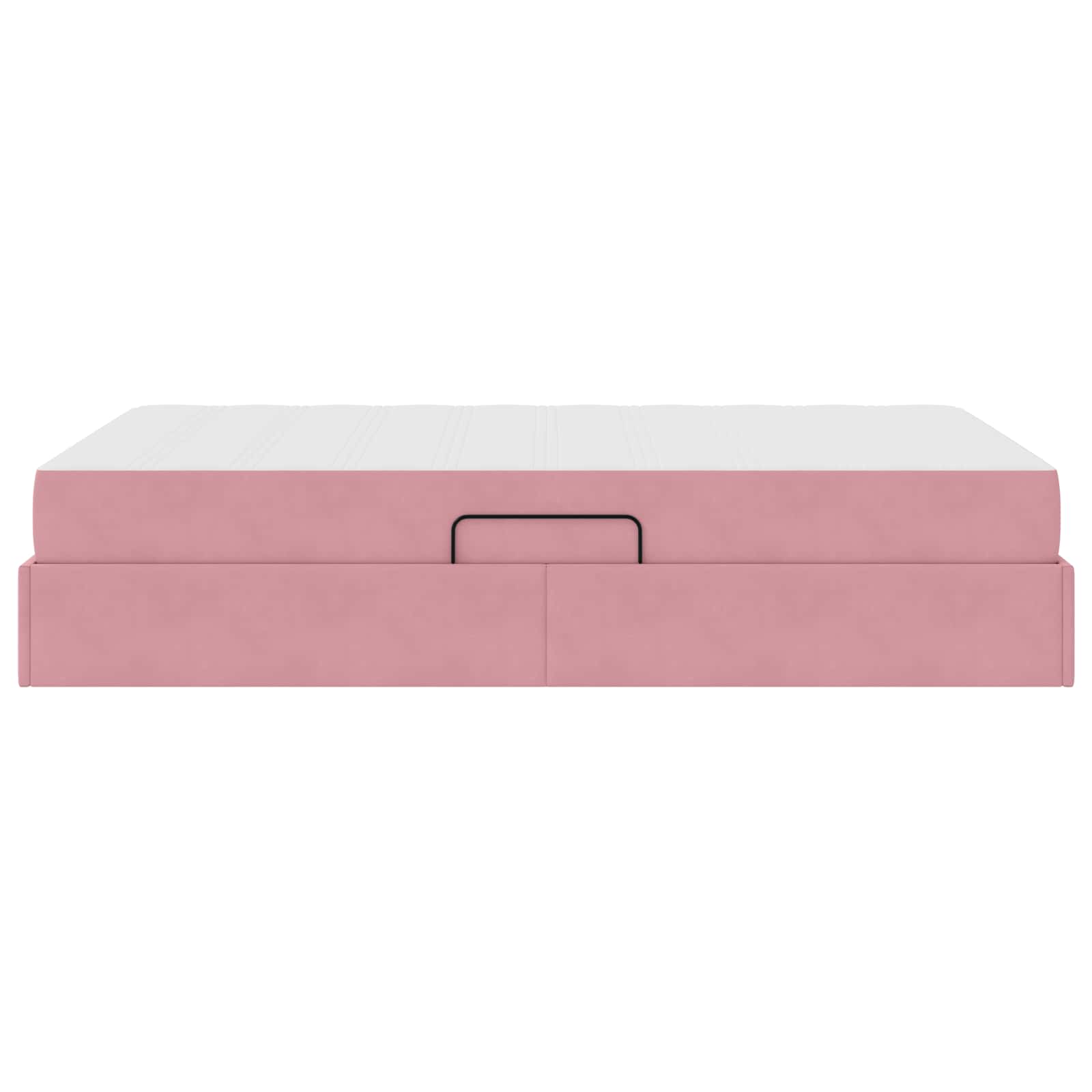 Pat cu saltea și spațiu de depozitare Roz 120 x 190 cm Catifea
