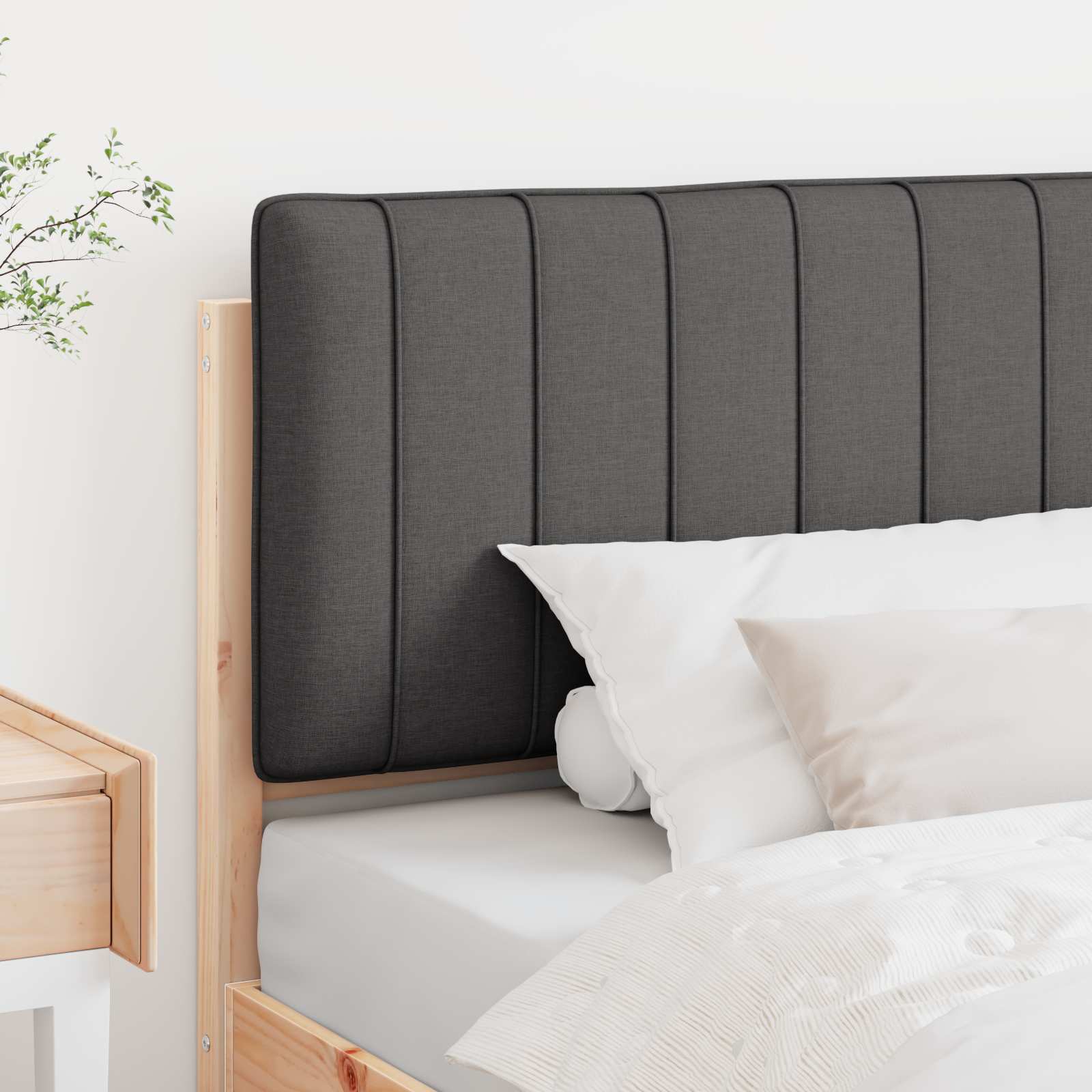 - Lemn masiv de pin: Capul de pat e făcut din lemn masiv de pin, ceea ce îi oferă o construcție solidă. Acest material natural a fost ales pentru rezistența lui la uzura zilnică, fiind o alegere durabilă pentru mobilierul tău. Suprafața netedă adaugă un aspect finisat, îmbunătățind decorul dormitorului.