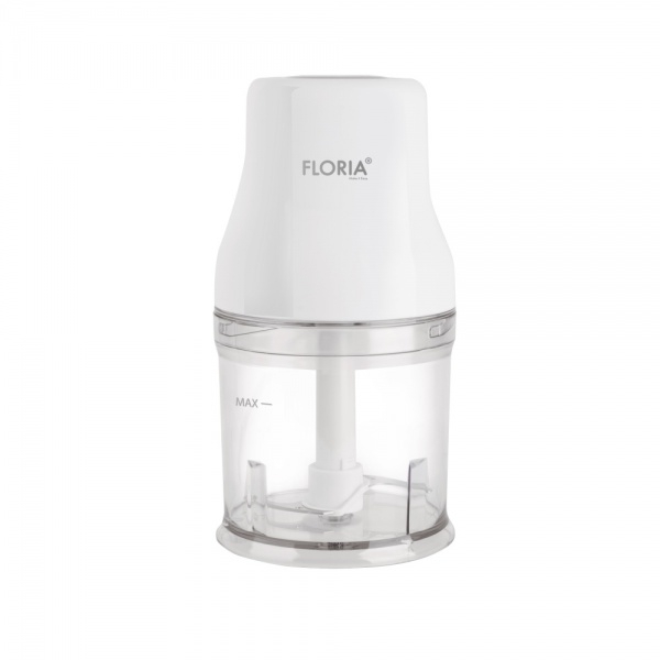 Tocatorul legume-fructe (chopper) Floria ZLN3042 beneficiaza de puterea de 200W si o capacitate a bolului de 0.5l ( 500 ml ). Tocatorul este format din 2 parti, prima parte fiind cea superioara unde se afla si motorul tocatorului si butonul pentru pornire/oprire, iar cea de a 2-a parte este partea inferioara unde se regaseste bolul detasabil si lamele din otel inoxidabil. Capacitatea totala de lucru este de 0.36L ( 360 ml ). Tocatorul este dotat cu picioruse cauciucate antiderapante si bolul tocatorului are capac pentru depozitarea usoara.