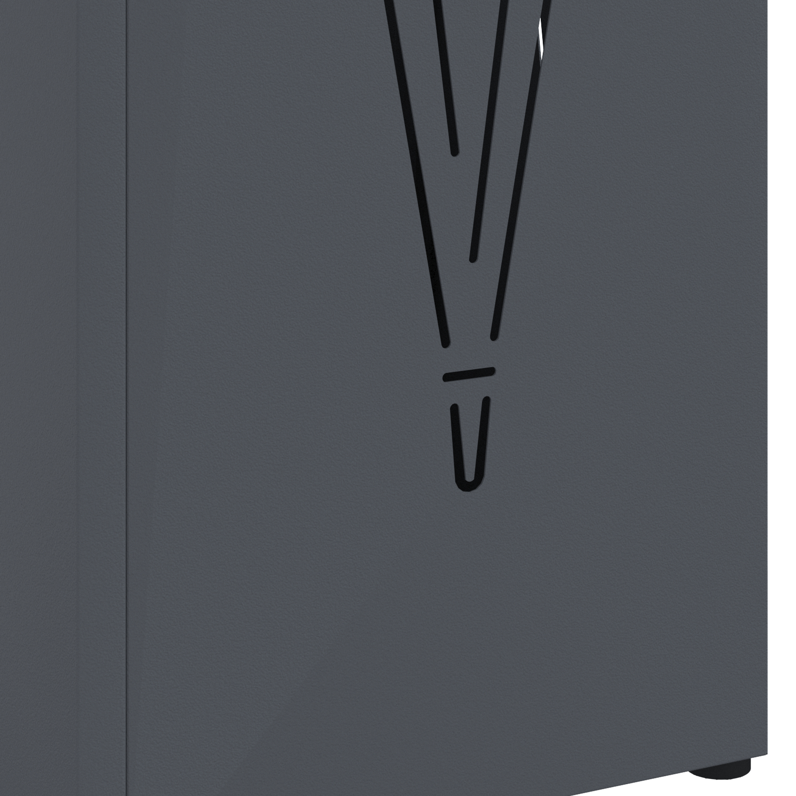 Acest suport de umbrele e super pentru orice hol, cu un finish tare fain gri antracit care îi dă aspect bun și e super practic. Ține mai multe umbrele ordonate, făcând ca intrarea ta să arate stylish, iar designul cu tăieturi cool ajută la vibe-ul primitor.