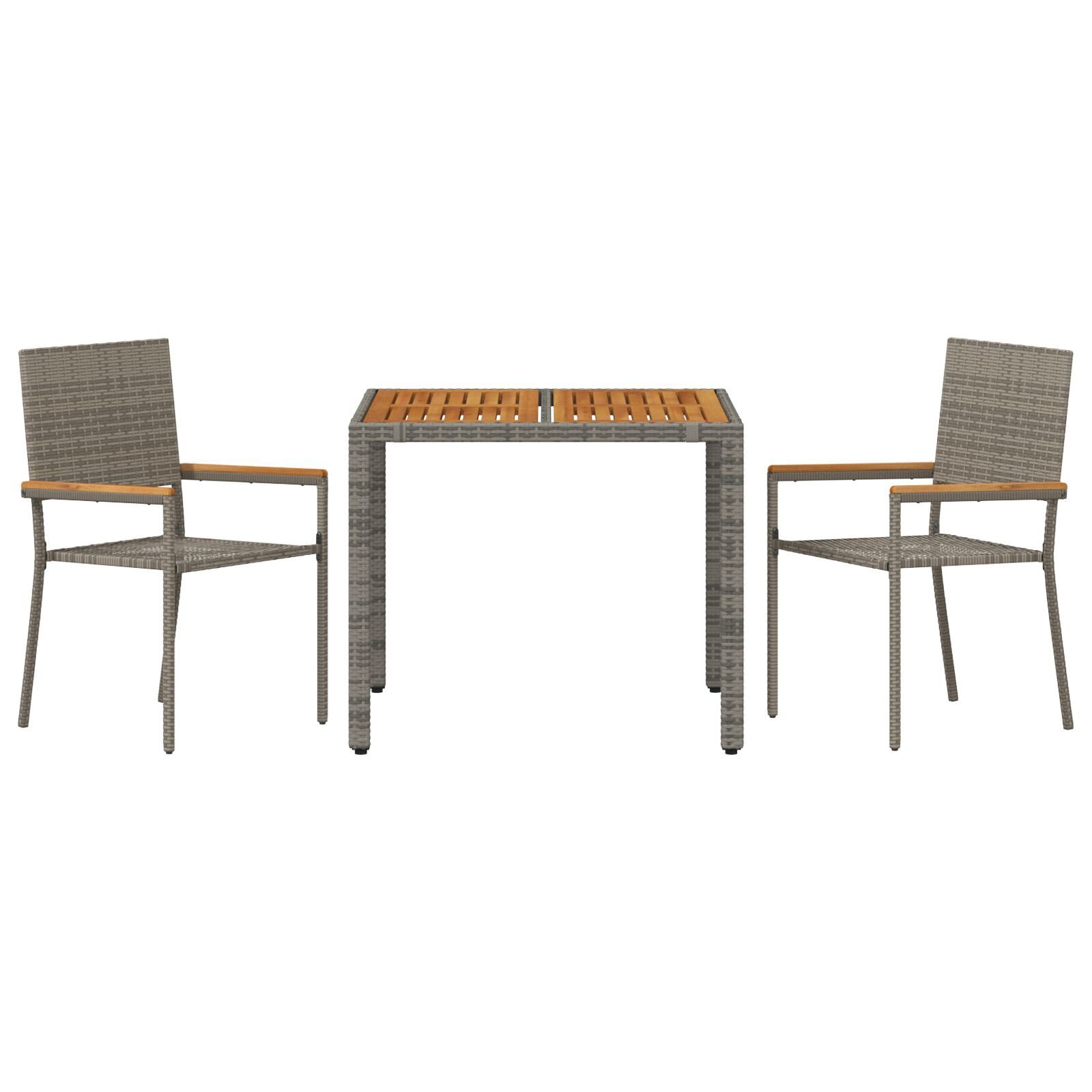 Setul ăsta de masă pentru grădină e un mix elegant de stil și practicitate, perfect pentru mese în aer liber. Cu ratanul gri modern și supraplată din lemn, îți va îmbunătăți balconul sau grădina, oferindu-ți un loc fain pentru mese, întâlniri sau momente de relaxare cu cafeaua.