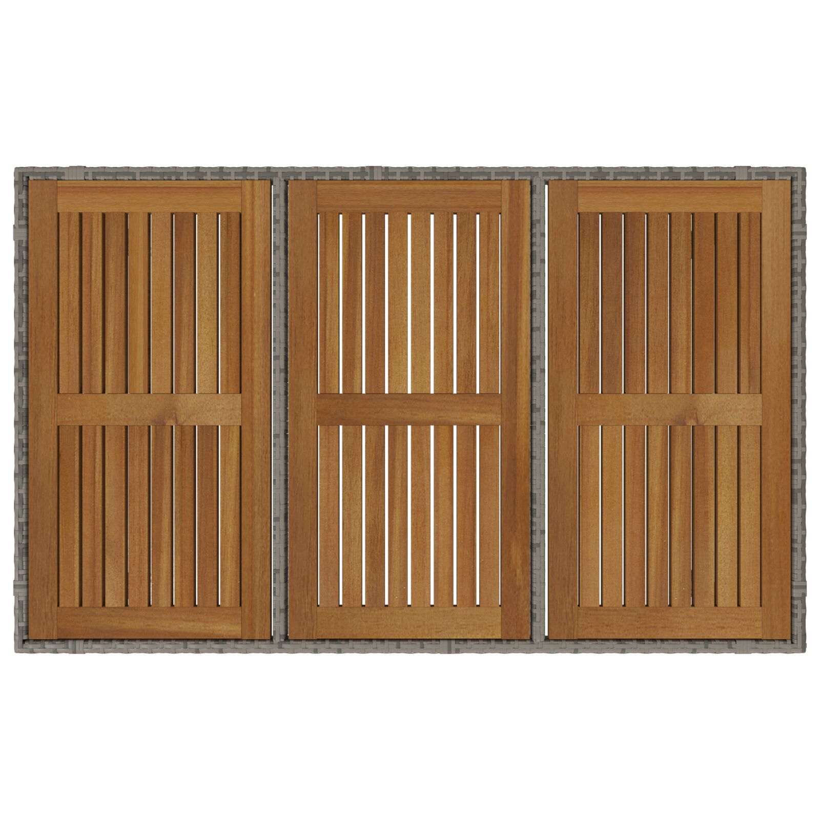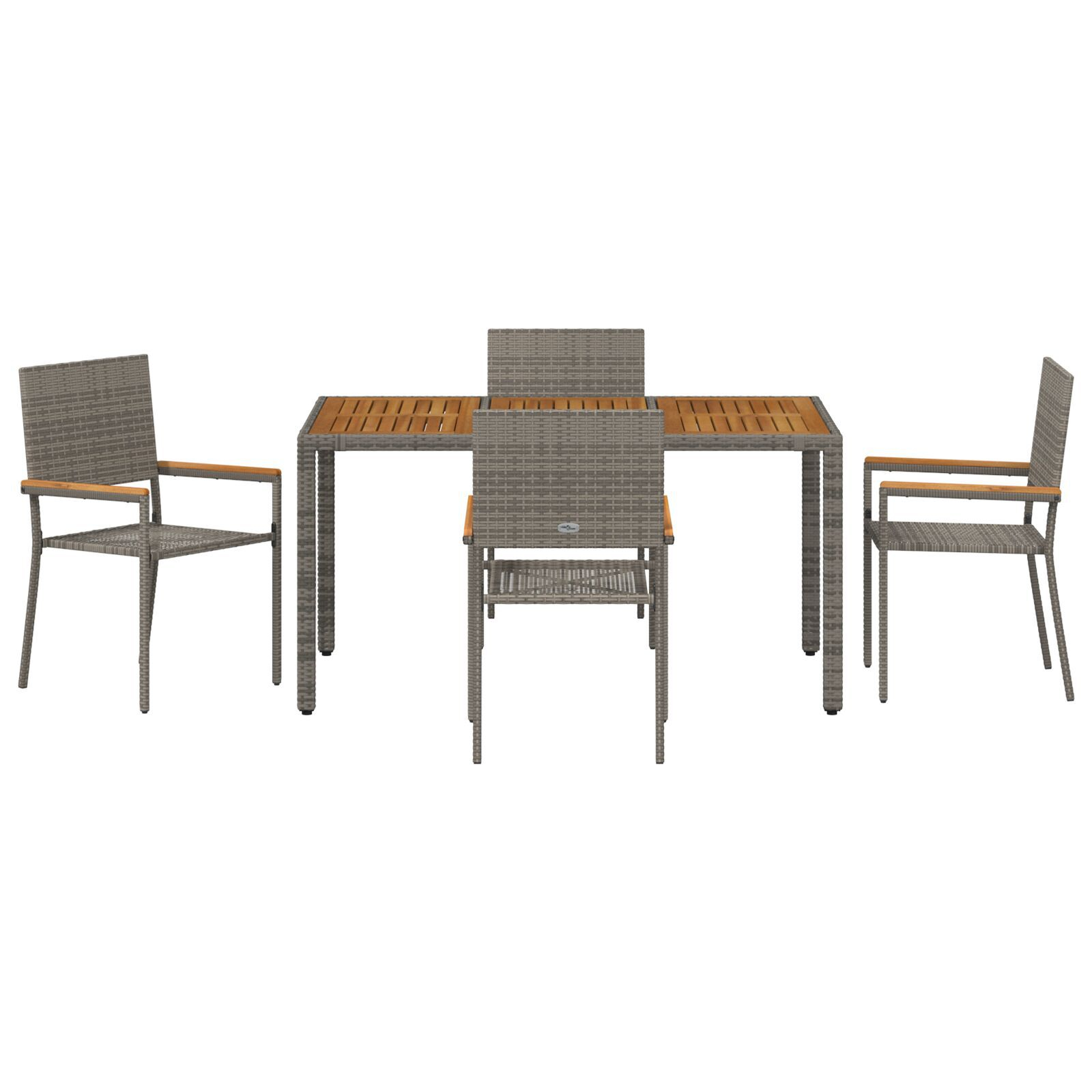 Setul ăsta de mese pentru grădină e un mix fain de stil și utilitate, perfect pentru mesele în aer liber. Cu poliratan gri la modă și un blat din lemn de acacia, setul ăsta va aduce un vibe modern balconului sau grădinii tale, făcându-l locul perfect pentru mese, întâlniri sau o cafea chill.