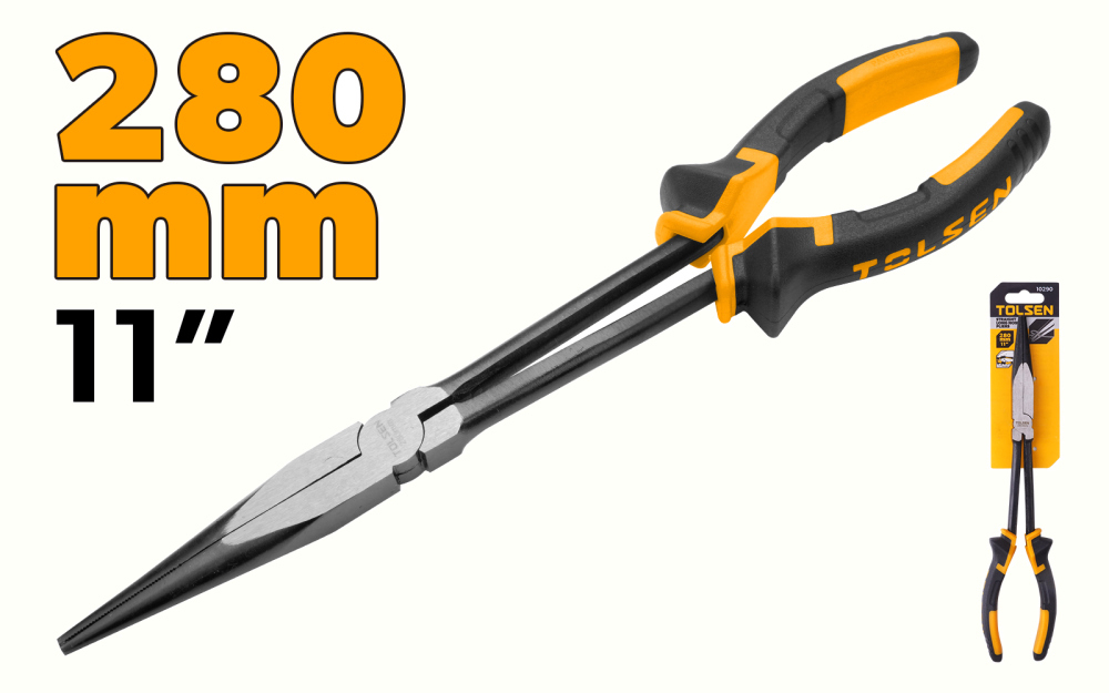 Clește cu vârf ascutit lung, drept, având o lungime de 280 mm sau 11 inch, este o uneltă esențială în orice trusă de scule.