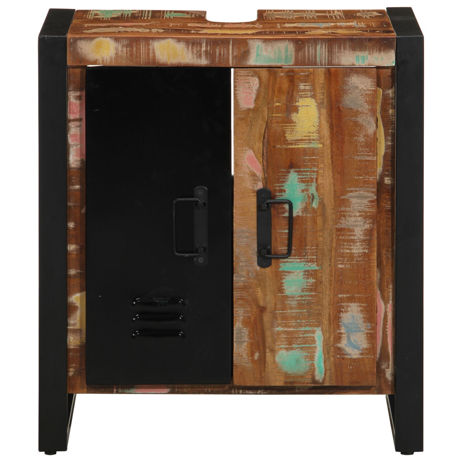 Cabinetul ăsta de depozitare pentru baie în stil Art Nouveau îmbină stilul și funcționalitatea, fiind o alegere grozavă pentru a-ți ascunde lucrurile esențiale. Cu culorile sale strălucitoare din lemn masiv recuperat și un cadru metalic negru, se face remarcat în orice casă modernă.
