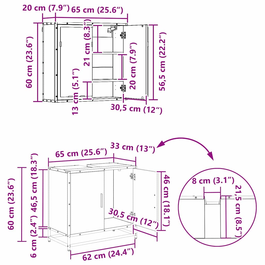 - Componente Incluse: Setul vine cu un dulap cu oglindă, un dulap de chiuvetă și un alt dulap de baie, toate gândite să-ți satisfacă nevoile de depozitare, astfel încât baia ta să rămână curată și ordonată.