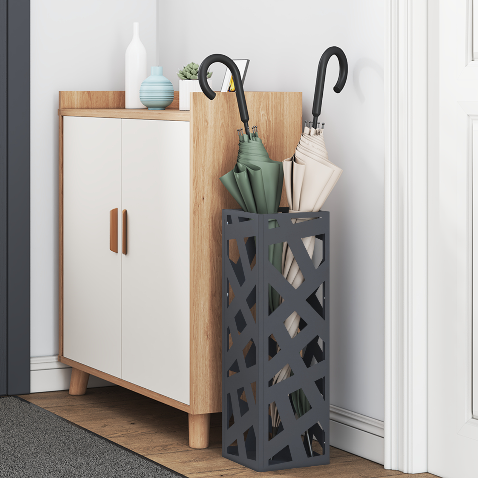 - Capacitate de Depozitare: Are un compartiment pentru mai mult decât umbrele, făcându-l super util în holurile moderne.