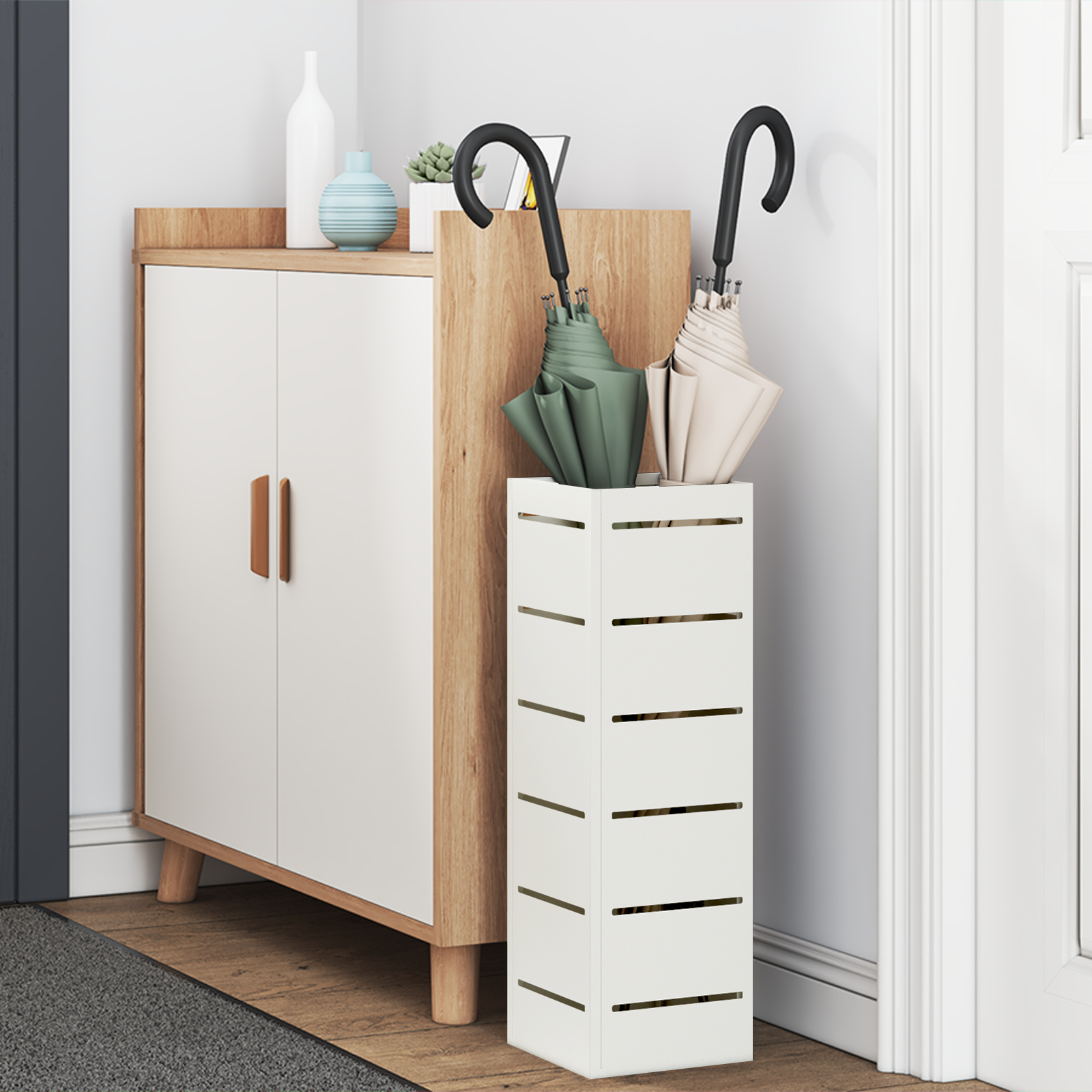 Acest suport pentru umbrele aduce un accent elegant în orice intrare. Are un finisaj alb curat care arată bine și este super util. E făcut să țină umbrele de toate dimensiunile, menținând holul ordonat și plăcut, iar modelul cu dungi îi dă un sentiment primitor.