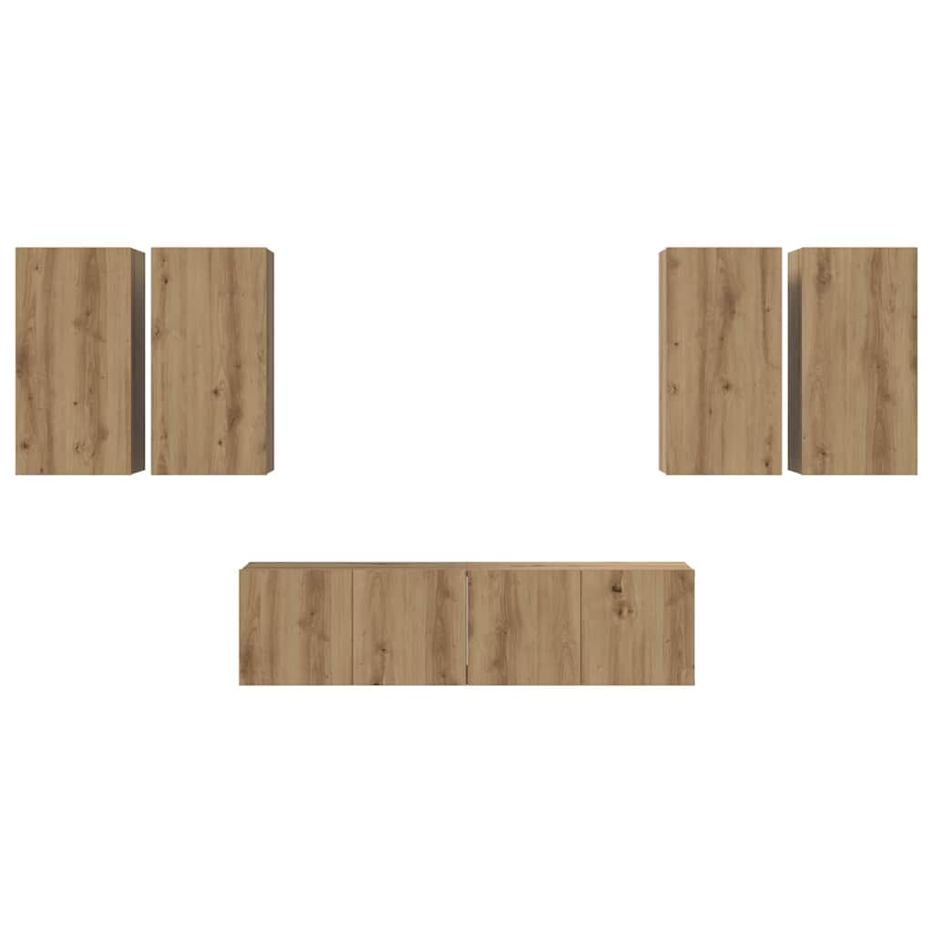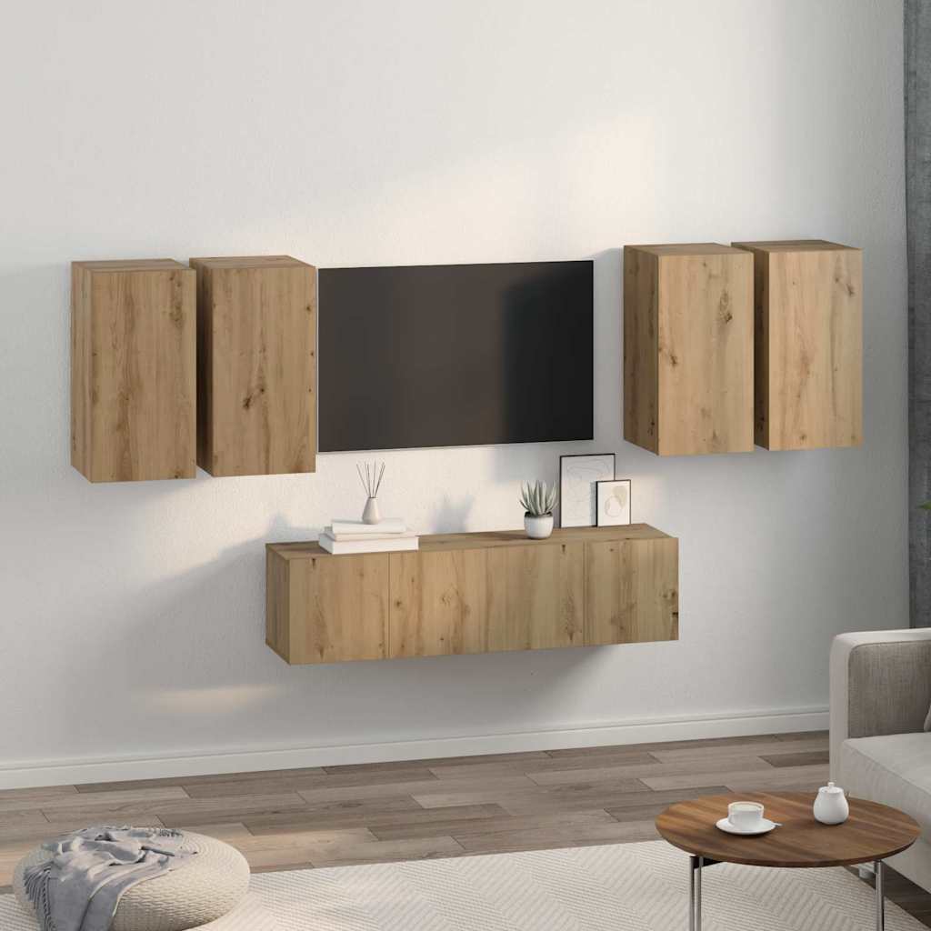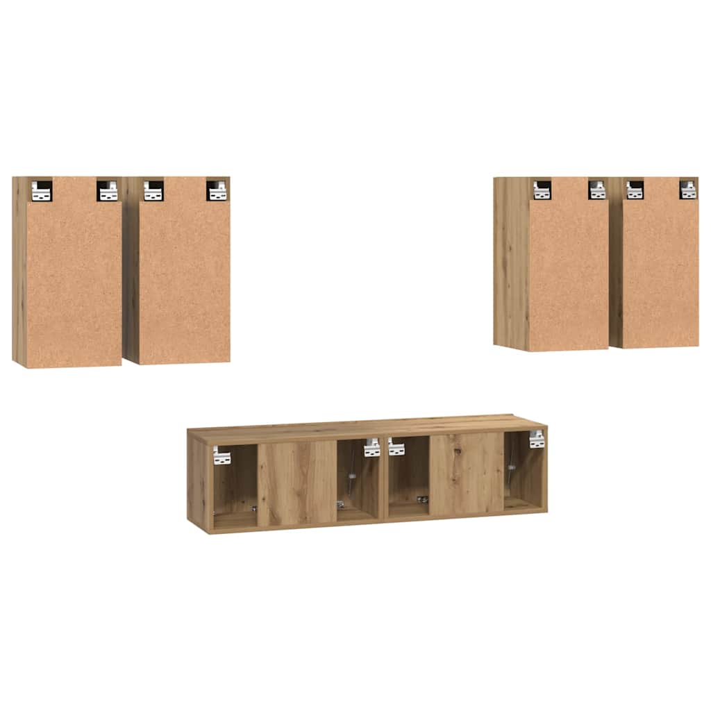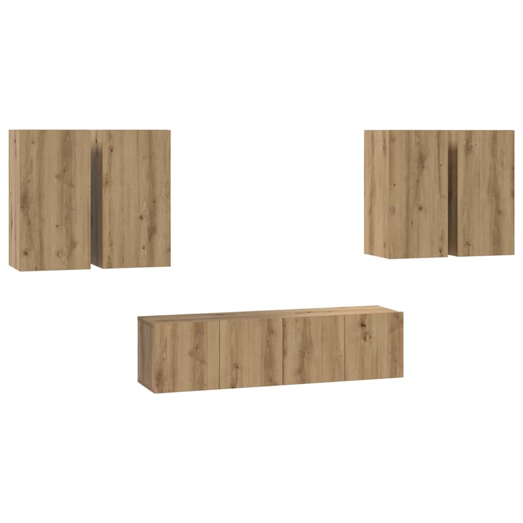 - Materiale: Setul de dulapuri este realizat din lemn prelucrat, cunoscut pentru rezistența și rezistența sa la deformare, oferind o unitate stabilă pentru nevoile tale media. Finisajul neted al suprafeței accentuează aspectul său modern, transformându-l într-o piesă centrală în orice cameră de zi.