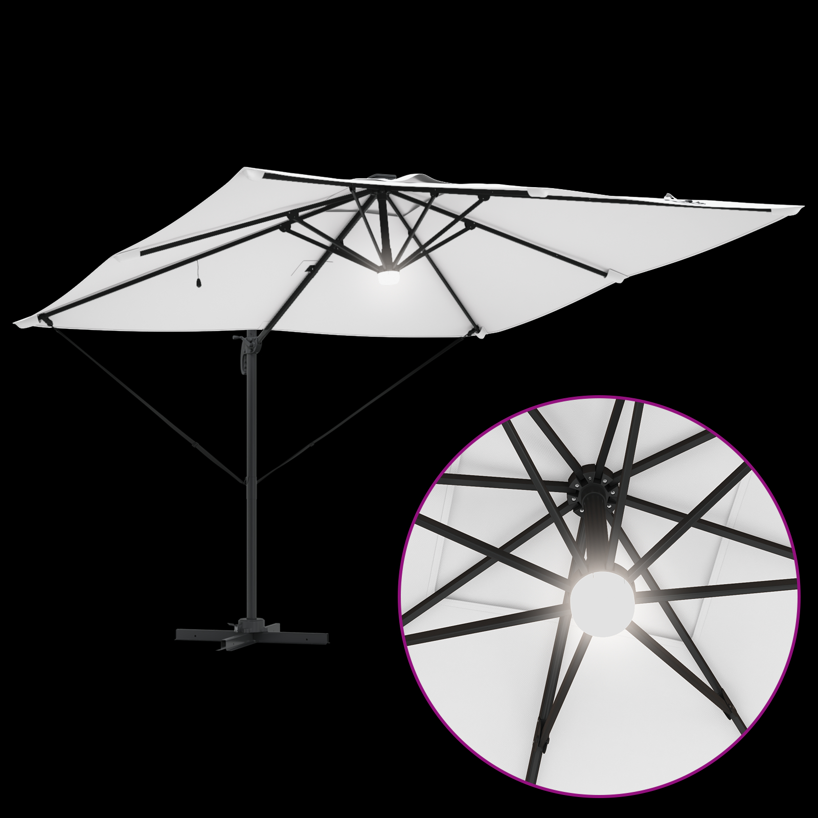 Această Umbrelă Cantilever cu LED-uri e combinația perfectă de stil și funcționalitate, ideală pentru oricine vrea să îmbunătățească spațiile exterioare. Designul ei elegant nu oferă doar multă umbră, dar și un aspect chic, fiind perfectă pentru terase, grădini sau balcoane, astfel încât întâlnirile tale să fie plăcute, indiferent de soare.